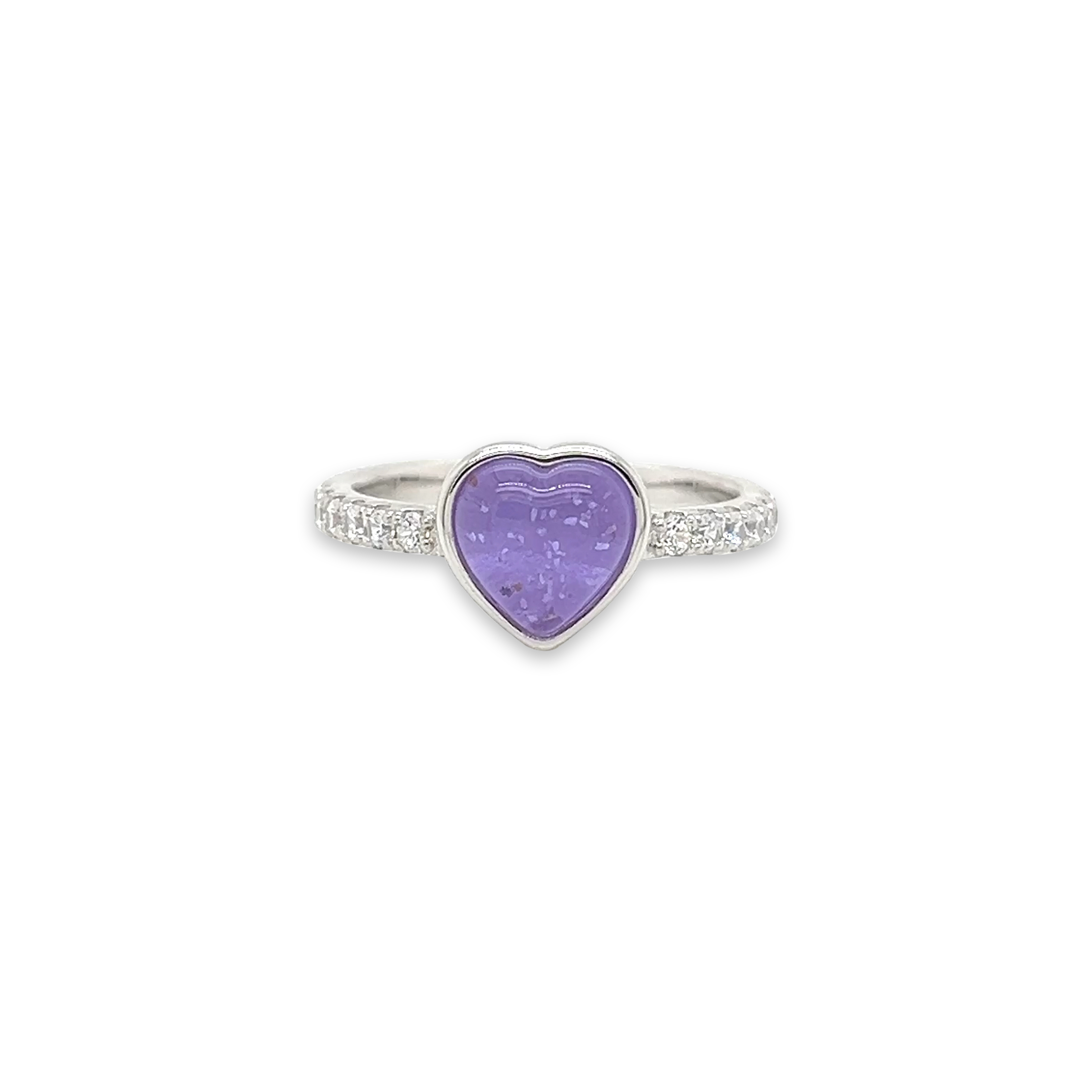 Alba Rose Amora Ashes Ring with Lavendite Murano Glass - Sterling Silver.
