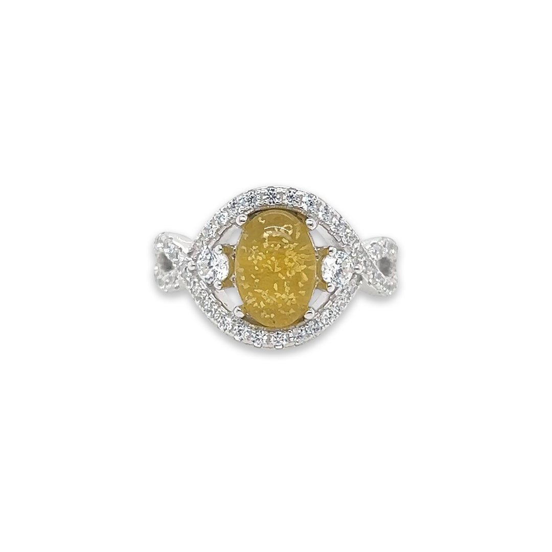Each Alba Rose Endless Ashes Ring is lovingly handcrafted to hold cherished memories close. Within the radiant tones of our Citrine Murano glass, a small token of your loved one's ashes is carefully suspended, creating a gemstone that is as unique as the life it honours. Expertly made in our production studio crafted in Sterling Silver, this ashes into glass ring captures both beauty and remembrance in a single, timeless piece — a meaningful keepsake to wear every day, symbolising love, peace, and connection.