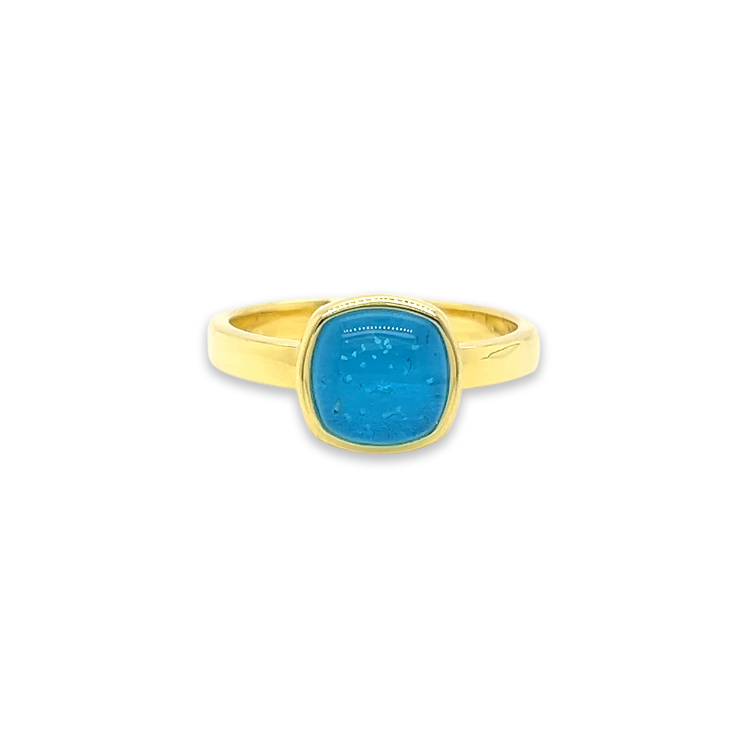 Each Alba Rose Comfort Ashes Ring is lovingly handcrafted to hold cherished memories close. Within the radiant tones of our Topaz Murano glass, a small token of your loved one's ashes is carefully suspended, creating a gemstone that is as unique as the life it honours. Expertly made in our production studio crafted in 9kt Yellow Gold, this ashes into glass ring captures both beauty and remembrance in a single, timeless piece — a meaningful keepsake to wear every day, symbolising love, peace, and connection.