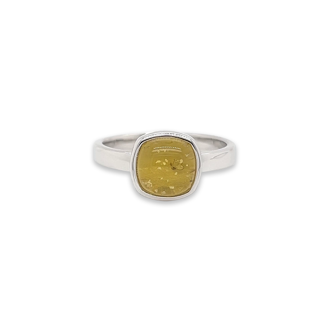 Each Alba Rose Comfort Ashes Ring is lovingly handcrafted to hold cherished memories close. Within the radiant tones of our Citrine Murano glass, a small token of your loved one's ashes is carefully suspended, creating a gemstone that is as unique as the life it honours. Expertly made in our production studio crafted in Sterling Silver, this ashes into glass ring captures both beauty and remembrance in a single, timeless piece — a meaningful keepsake to wear every day, symbolising love, peace, and connection.