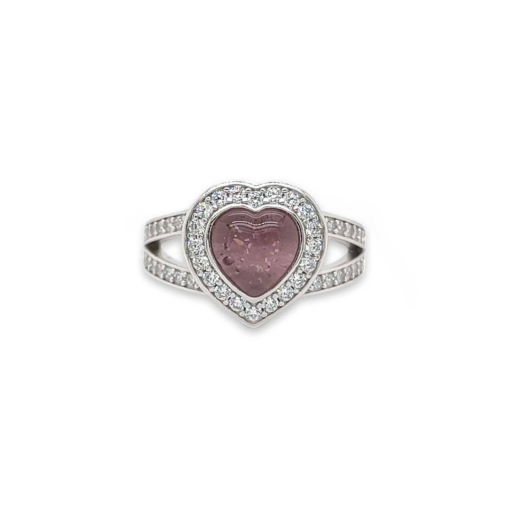 Alba Rose Affinity Ashes Ring with Tourmaline Murano Glass - Sterling Silver.