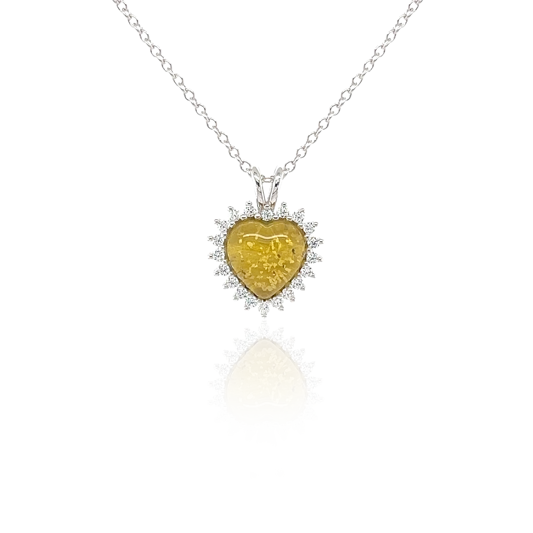 Each Alba Rose Cherish Ashes Pendant is lovingly handcrafted to hold cherished memories close. Within the radiant tones of our Citrine Murano glass, a small token of your loved one's ashes is carefully suspended, creating a gemstone that is as unique as the life it honours. Expertly made in our production studio crafted in Sterling Silver, this ashes into glass pendant captures both beauty and remembrance in a single, timeless piece — a meaningful keepsake to wear every day, symbolising love, peace, and connection.