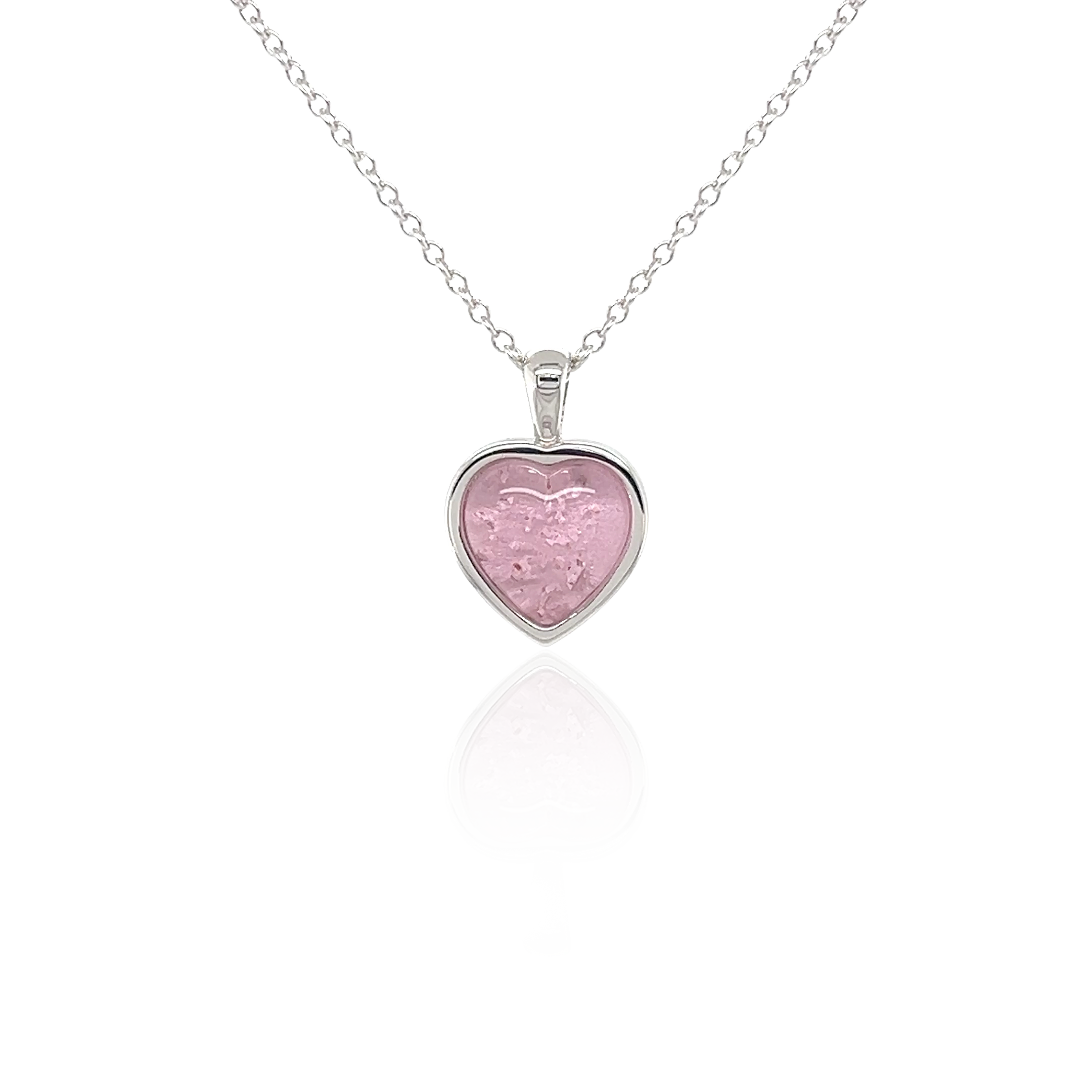 Each Alba Rose Tribute Ashes Pendant is lovingly handcrafted to hold cherished memories close. Within the radiant tones of our Rosalite Murano glass, a small token of your loved one's ashes is carefully suspended, creating a gemstone that is as unique as the life it honours. Expertly made in our production studio crafted in Sterling Silver, this ashes into glass pendant captures both beauty and remembrance in a single, timeless piece — a meaningful keepsake to wear every day, symbolising love, peace, and connection.