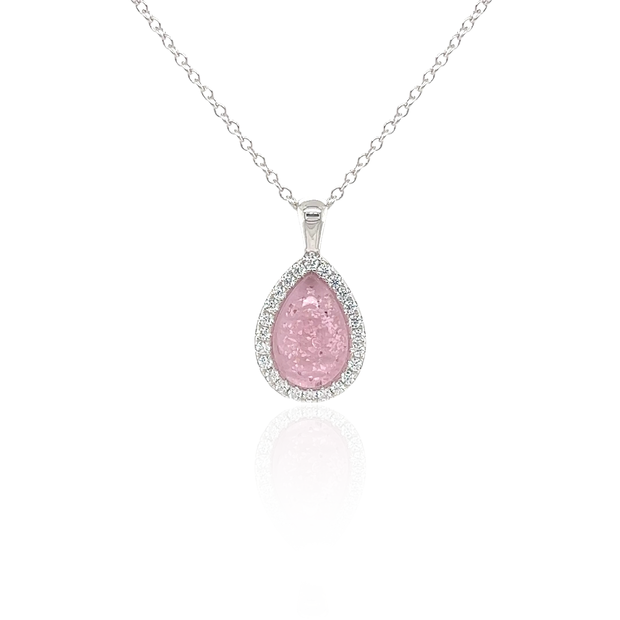 Each Alba Rose Honour Ashes Pendant is lovingly handcrafted to hold cherished memories close. Within the radiant tones of our Rosalite Murano glass, a small token of your loved one's ashes is carefully suspended, creating a gemstone that is as unique as the life it honours. Expertly made in our production studio crafted in Sterling Silver, this ashes into glass pendant captures both beauty and remembrance in a single, timeless piece — a meaningful keepsake to wear every day, symbolising love, peace, and connection.