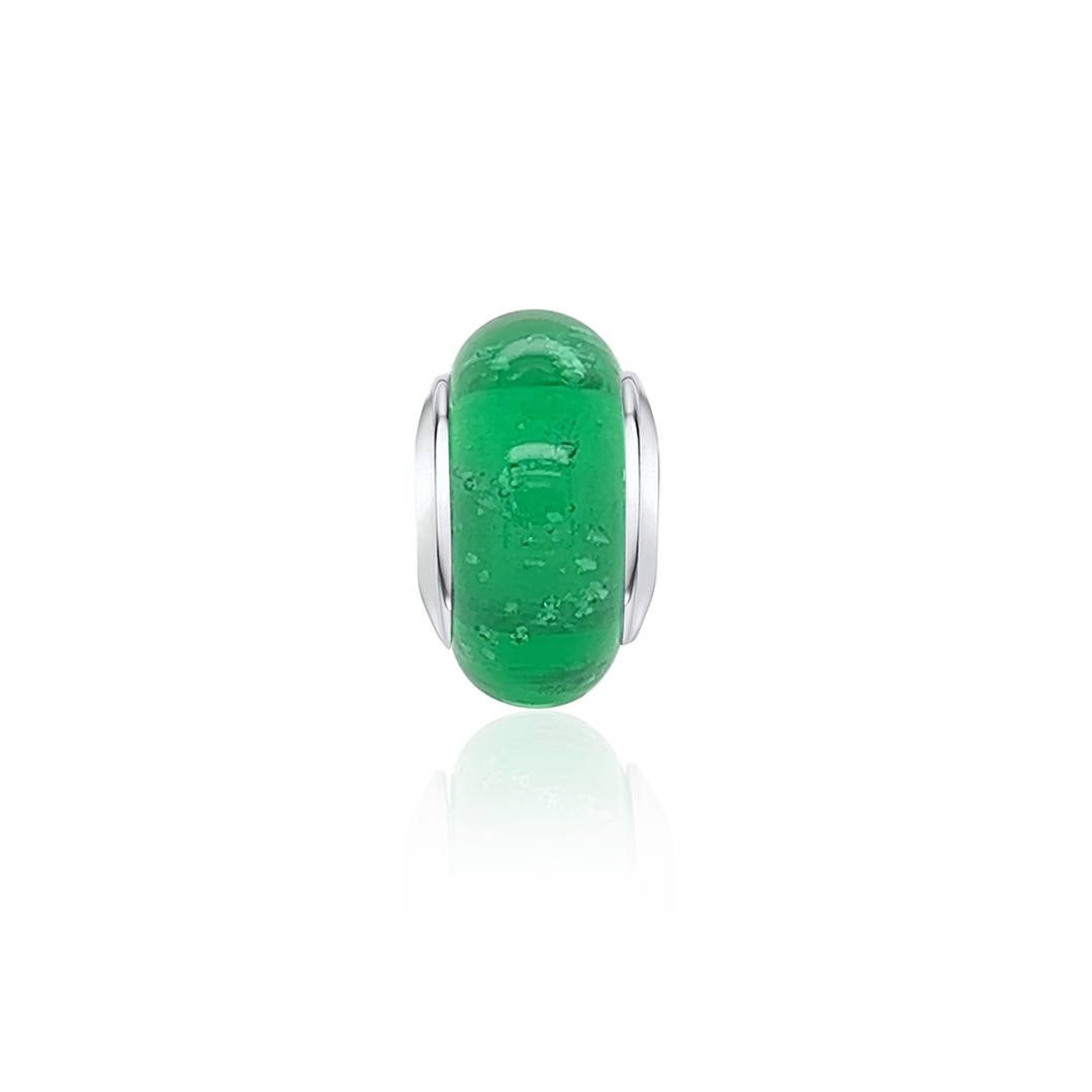 Alba Rose Ashes Glass Charm with Emerald Murano Glass - Sterling Silver.