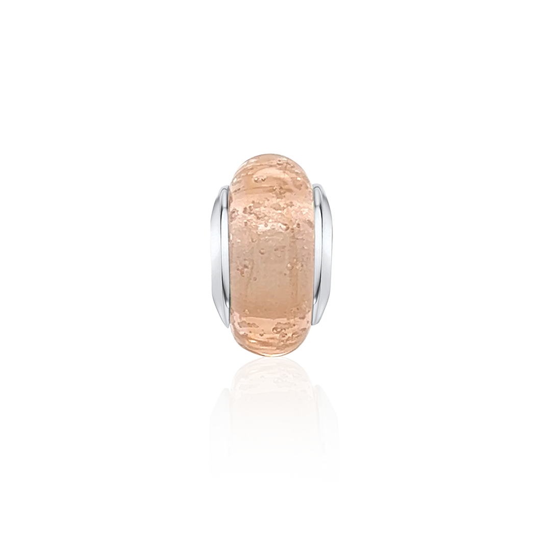 Alba Rose Ashes Glass Charm with Morganite Murano Glass - Sterling Silver.